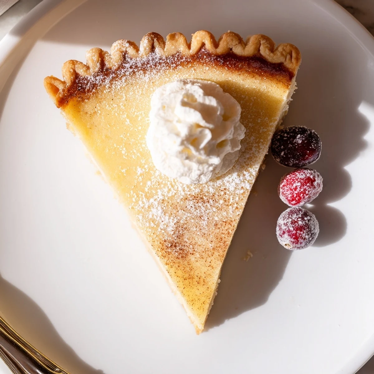 Warm Christmas Eve Custard Pie With Cinnamon Vanilla, golden crust and silky filling. Pin it