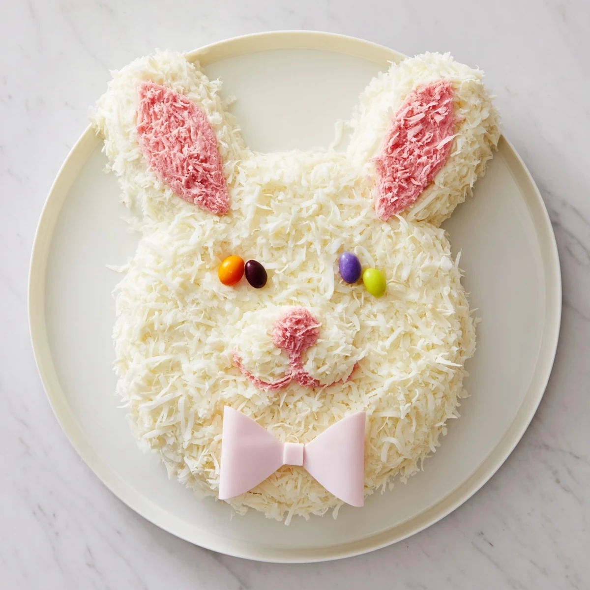 One Easter morning, my niece walked into the kitchen while I was arranging the bunny face on a platter and immediately asked if she could place the jelly bean nose. She chose a sparkly pink one that looked ridiculous against the white coconut, and it became my favorite detail on the entire cake.