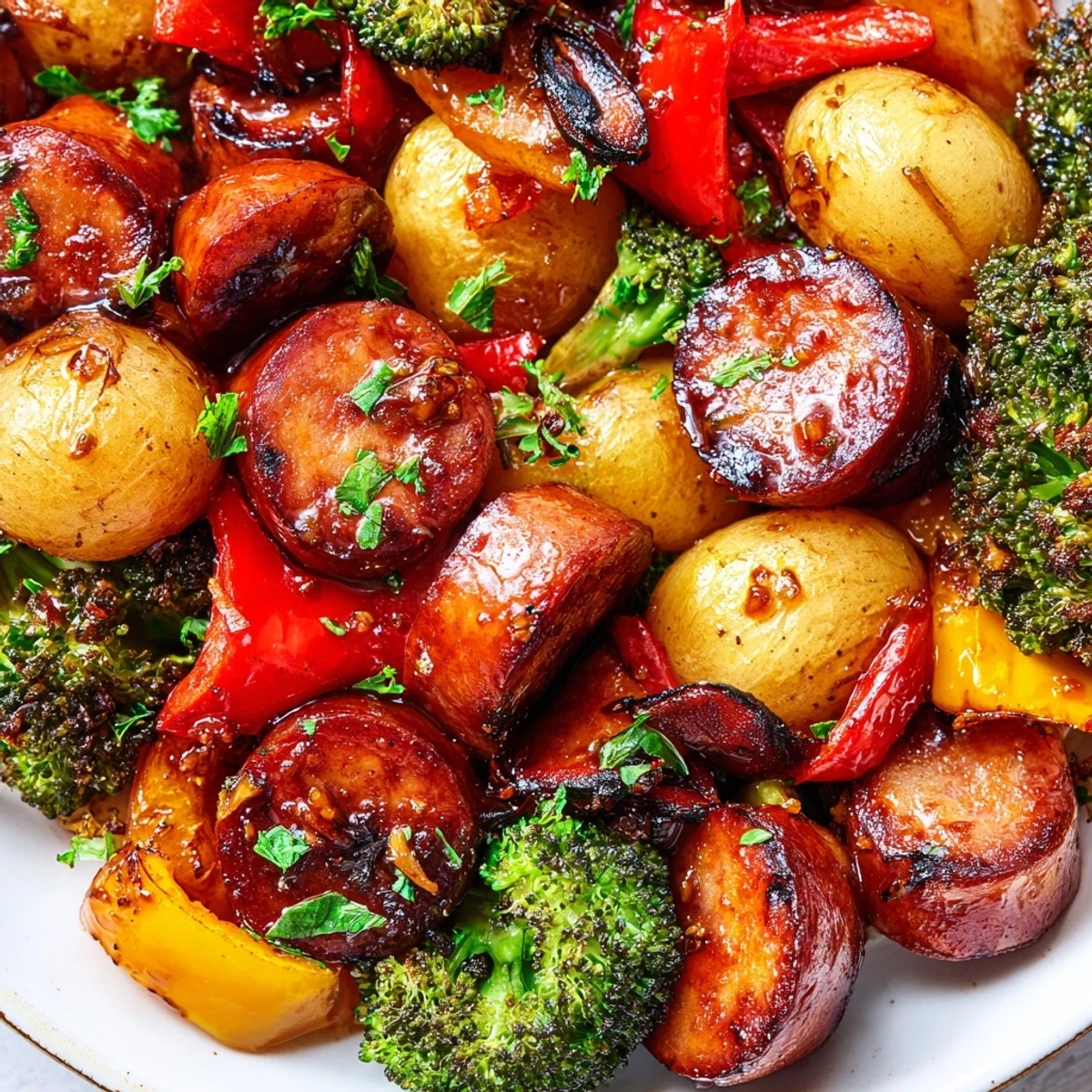 - Kielbasa sausage: The smoky, already-cooked nature of kielbasa means it only needs heating through, and it releases flavorful fat that helps roast the vegetables around it
