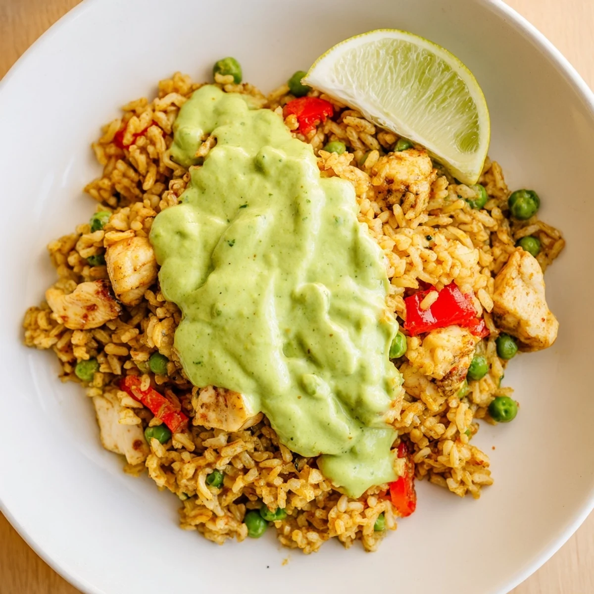 Store the chicken and rice mixture in an airtight container in the refrigerator for up to three days. Keep the green sauce separate in a sealed jar. Reheat gently with a splash of water or broth to refresh the rice. The sauce actually develops more flavor overnight.
