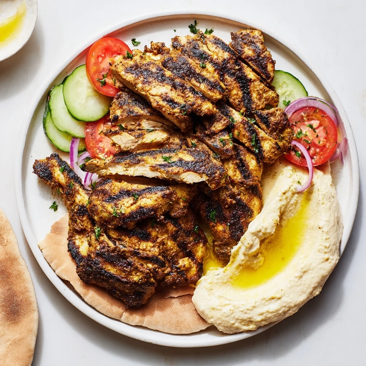 Marinate boneless chicken thighs in yogurt, lemon, olive oil, garlic and warm spices, then grill or sear until deeply charred and juicy. Make a traditional toum by emulsifying garlic, oil and lemon into a fluffy, tangy sauce. Slice rested chicken and pile into warm pita or serve over rice with tomato, cucumber and herbs. Overnight marination intensifies flavor; oven roasting works too.